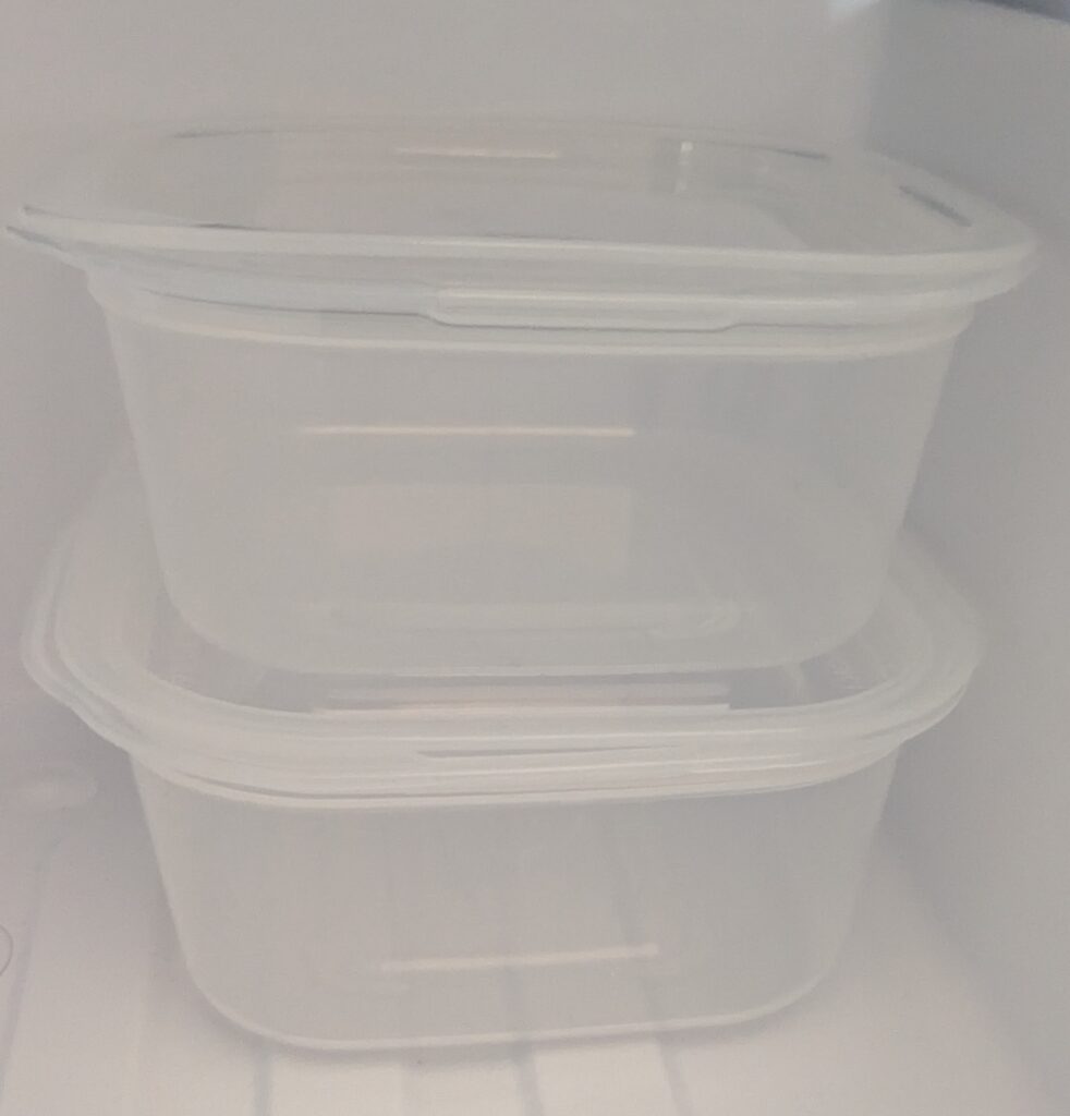 ラップで冷凍していた時が整理できないという事はありませんでしたが、この「蓋をしたままレンジで使えるフードコンテナ」は重ねる事ができますので、冷凍庫の収納力が格段にあがります。