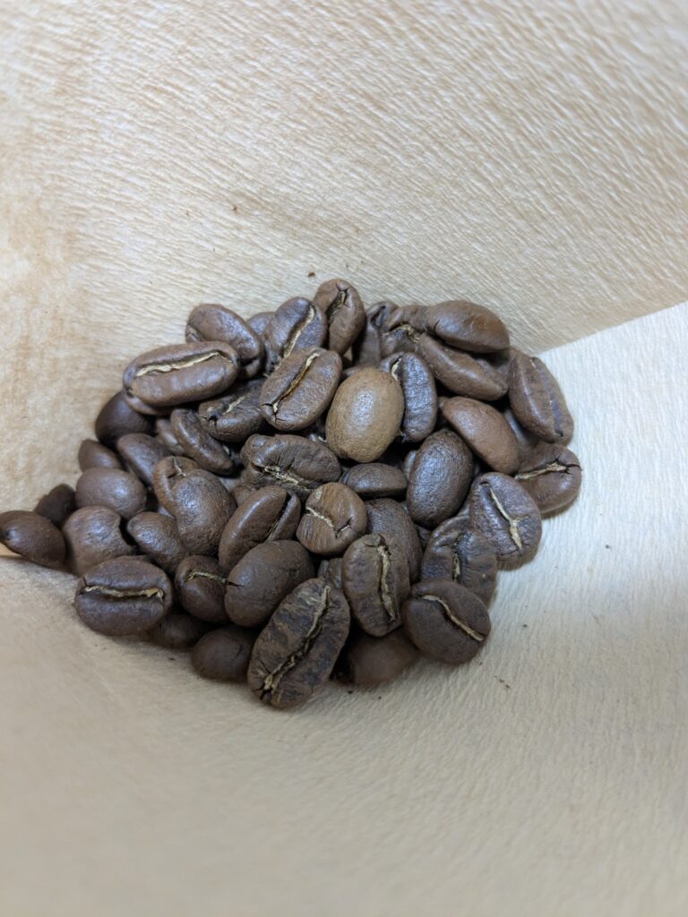 「バランスのとれた誰でも飲みやすい豆で、コスパも抜群。」と説明してくださいました。この豆は常連さんも良く購入されているそうで、多い日には10kg程売れるそうです。価格400gで1000円程と破格でした!!焙煎度はファインローストとなり、豆自体の見た目はやや濃いめ茶色でツヤが少ない状態です。